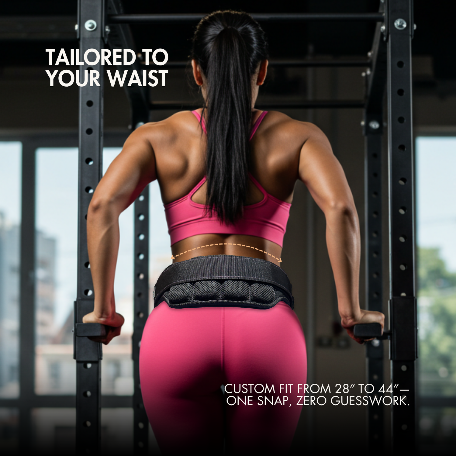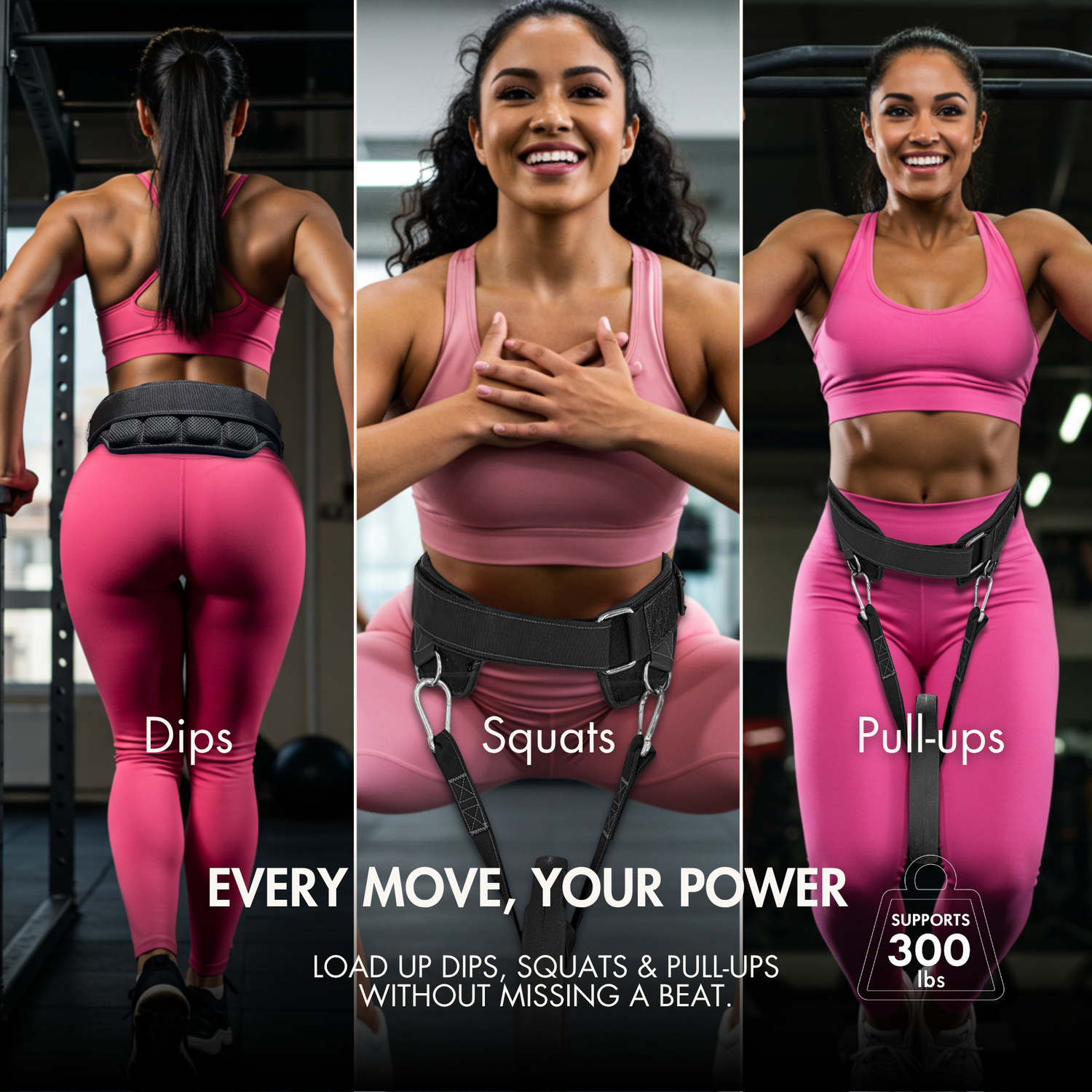 The only dip belt shaped for a woman’s body. No chains, no bruises—just power.
